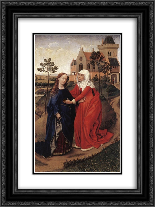 Visitation 18x24 Black Ornate Wood Framed Art Print Poster with Double Matting by van der Weyden, Rogier