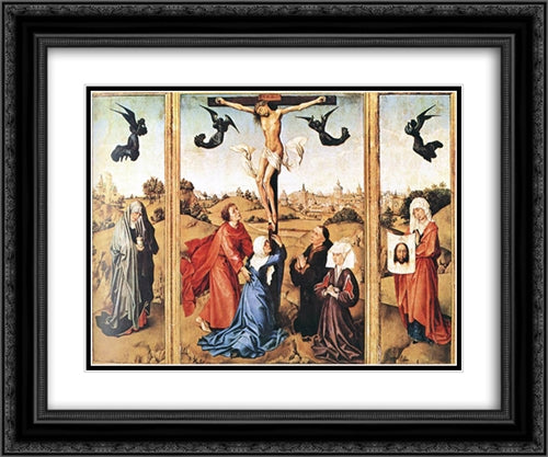 Triptych of Holy Cross 24x20 Black Ornate Wood Framed Art Print Poster with Double Matting by van der Weyden, Rogier