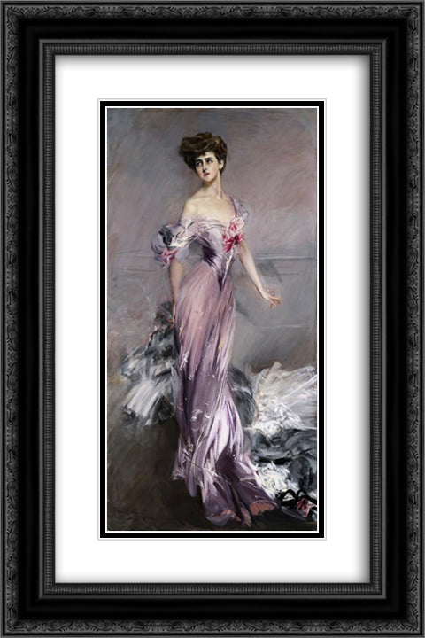 Portrait of Mrs. Howard Johnston 16x24 Black Ornate Wood Framed Art Print Poster with Double Matting by Boldini, Giovanni