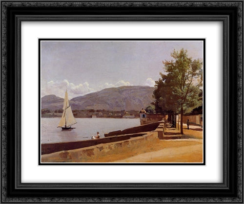 The Quai des Paquis in Geneva 24x20 Black Ornate Wood Framed Art Print Poster with Double Matting by Corot, Jean Baptiste Camille