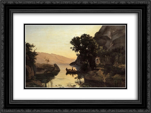 View at Riva, Italian Tyrol 24x18 Black Ornate Wood Framed Art Print Poster with Double Matting by Corot, Jean Baptiste Camille