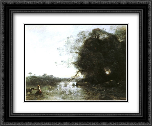 Le Marais Au Grand Arbre Et A La Chevriere 24x20 Black Ornate Wood Framed Art Print Poster with Double Matting by Corot, Jean Baptiste Camille