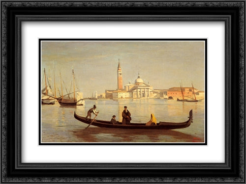 Venise''Gondole sur Le Grand Canal 24x18 Black Ornate Wood Framed Art Print Poster with Double Matting by Corot, Jean Baptiste Camille