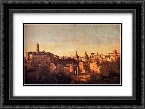 Forum Viewed From The Farnese Gardens 24x18 Black Ornate Wood Framed Art Print Poster with Double Matting by Corot, Jean Baptiste Camille
