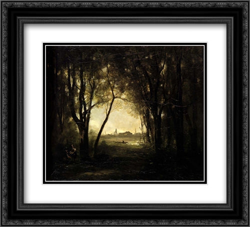 Landscape with a Lake 22x20 Black Ornate Wood Framed Art Print Poster with Double Matting by Corot, Jean Baptiste Camille