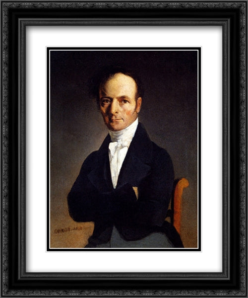 Portrait Of A Man 20x24 Black Ornate Wood Framed Art Print Poster with Double Matting by Corot, Jean Baptiste Camille