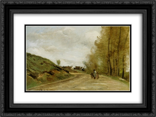 La Route de Gouvieux 24x18 Black Ornate Wood Framed Art Print Poster with Double Matting by Corot, Jean Baptiste Camille