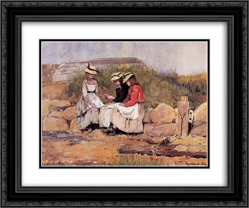 Girls with Lobster 24x20 Black Ornate Wood Framed Art Print Poster with Double Matting by Homer, Winslow