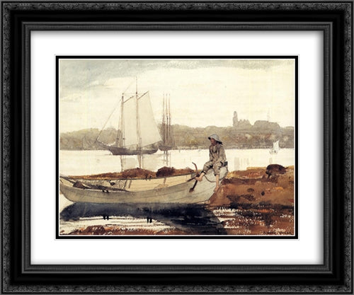 Gloucester Harbor and Dory 24x20 Black Ornate Wood Framed Art Print Poster with Double Matting by Homer, Winslow