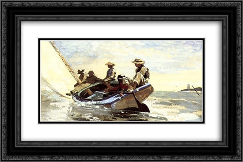 Sailing the Catboat 24x16 Black Ornate Wood Framed Art Print Poster with Double Matting by Homer, Winslow