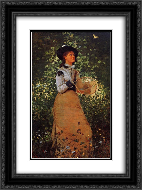 The Butterfly Girl 18x24 Black Ornate Wood Framed Art Print Poster with Double Matting by Homer, Winslow