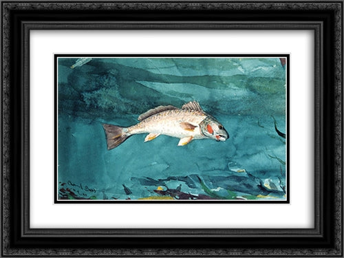 Channel Bass 24x18 Black Ornate Wood Framed Art Print Poster with Double Matting by Homer, Winslow