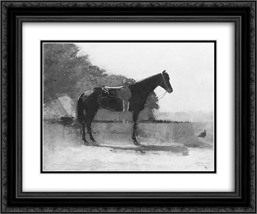 Saddle Horse in Farm Yard 24x20 Black Ornate Wood Framed Art Print Poster with Double Matting by Homer, Winslow