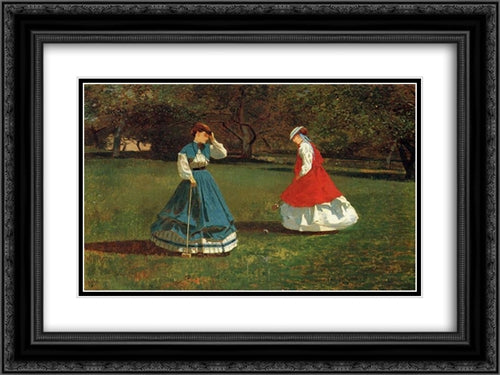 A Game of Croquet 24x18 Black Ornate Wood Framed Art Print Poster with Double Matting by Homer, Winslow