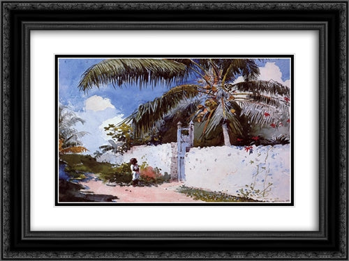 A Garden in Nassau 24x18 Black Ornate Wood Framed Art Print Poster with Double Matting by Homer, Winslow
