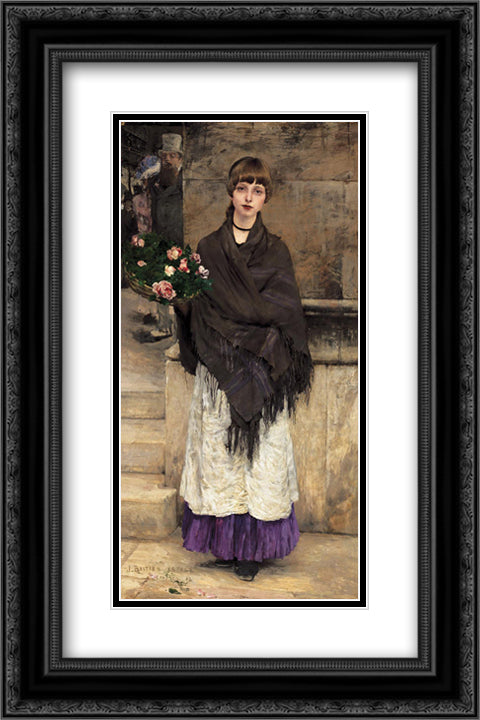 Marchande de Fleurs a Londre 16x24 Black Ornate Wood Framed Art Print Poster with Double Matting by Bastien Lepage, Jules
