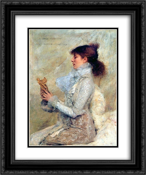Portrait of Sarah Bernhardt 20x24 Black Ornate Wood Framed Art Print Poster with Double Matting by Bastien Lepage, Jules