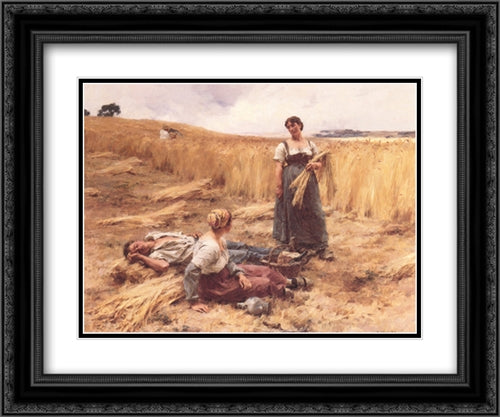 Moissonneurs a Mont'Saint'Pere 24x20 Black Ornate Wood Framed Art Print Poster with Double Matting by L'Hermitte, Leon Augustin
