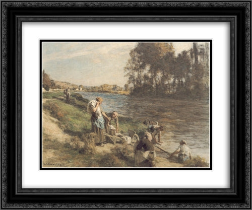 Laveuses au bord de la Marne 24x20 Black Ornate Wood Framed Art Print Poster with Double Matting by L'Hermitte, Leon Augustin