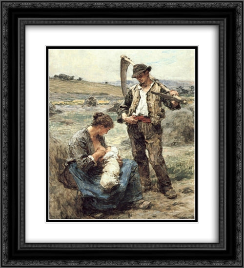 Maternite ou L'Heureuse Famille 20x22 Black Ornate Wood Framed Art Print Poster with Double Matting by L'Hermitte, Leon Augustin