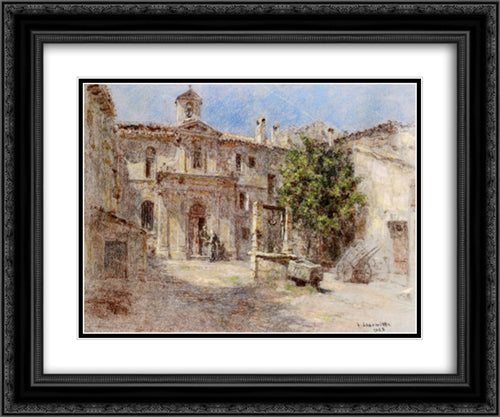 La Chapelle des Penitents gris Avignon 24x20 Black Ornate Wood Framed Art Print Poster with Double Matting by L'Hermitte, Leon Augustin