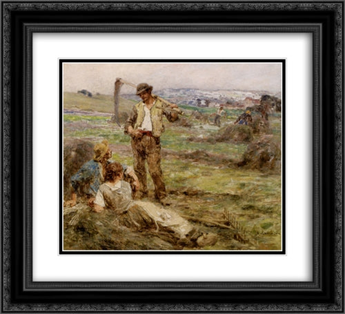 Repos pendant la fenaison 22x20 Black Ornate Wood Framed Art Print Poster with Double Matting by L'Hermitte, Leon Augustin