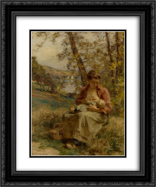 The Young Lovers 20x24 Black Ornate Wood Framed Art Print Poster with Double Matting by L'Hermitte, Leon Augustin