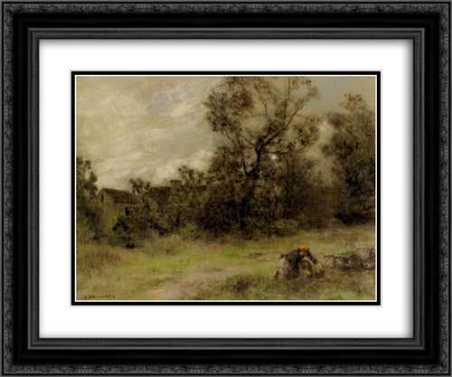 La Coupeuse dHerbes 24x20 Black Ornate Wood Framed Art Print Poster with Double Matting by L'Hermitte, Leon Augustin