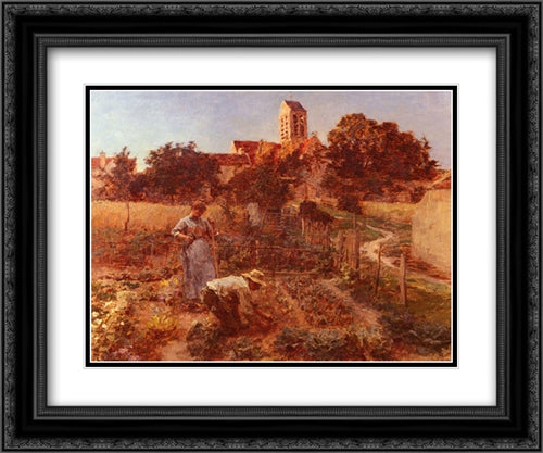 Au Jardin, Charteves, Pres De Mont'Saint'Pere 24x20 Black Ornate Wood Framed Art Print Poster with Double Matting by L'Hermitte, Leon Augustin