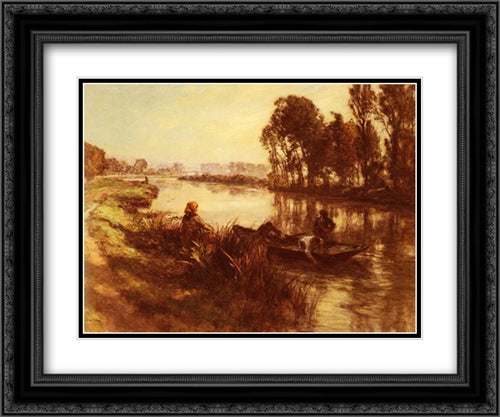 Au Bord De La Riviere 24x20 Black Ornate Wood Framed Art Print Poster with Double Matting by L'Hermitte, Leon Augustin