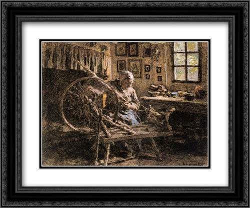 The Spinning Wheel 24x20 Black Ornate Wood Framed Art Print Poster with Double Matting by L'Hermitte, Leon Augustin
