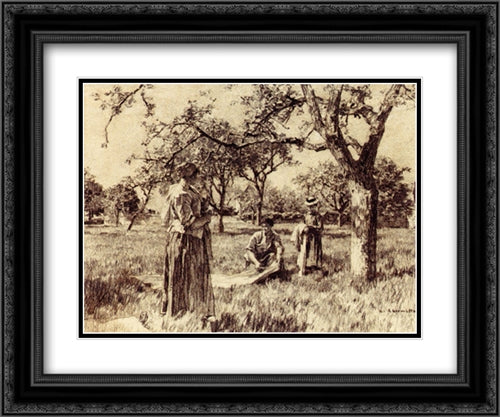 Washerwomen Setting The Linens Out To Dry 24x20 Black Ornate Wood Framed Art Print Poster with Double Matting by L'Hermitte, Leon Augustin