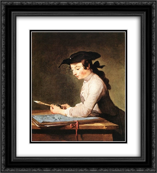 The Draughtsman 20x22 Black Ornate Wood Framed Art Print Poster with Double Matting by Chardin, Jean Baptiste Simeon