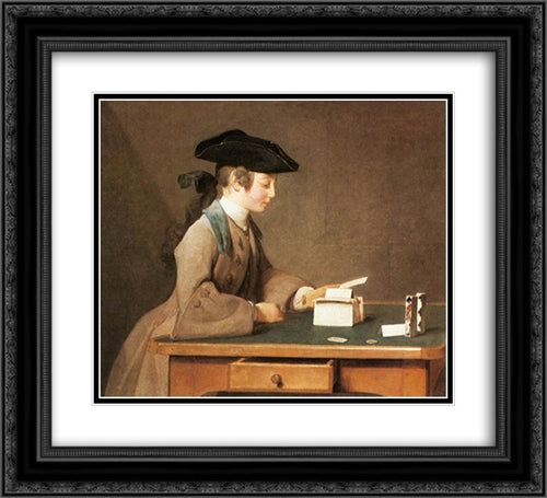 The House of Cards 22x20 Black Ornate Wood Framed Art Print Poster with Double Matting by Chardin, Jean Baptiste Simeon