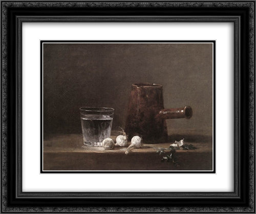 Water Glass and Jug 24x20 Black Ornate Wood Framed Art Print Poster with Double Matting by Chardin, Jean Baptiste Simeon