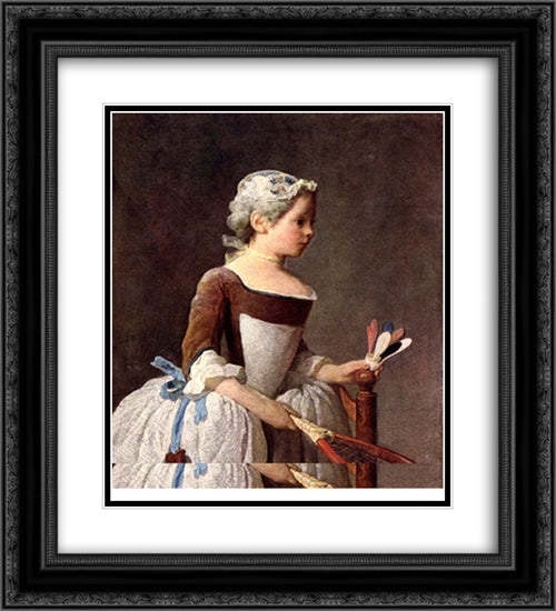 Girl with a featherball racket 20x22 Black Ornate Wood Framed Art Print Poster with Double Matting by Chardin, Jean Baptiste Simeon