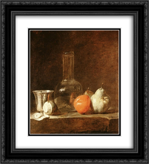 Still Life with Carafe, Silver Goblet and Fruit 20x22 Black Ornate Wood Framed Art Print Poster with Double Matting by Chardin, Jean Baptiste Simeon