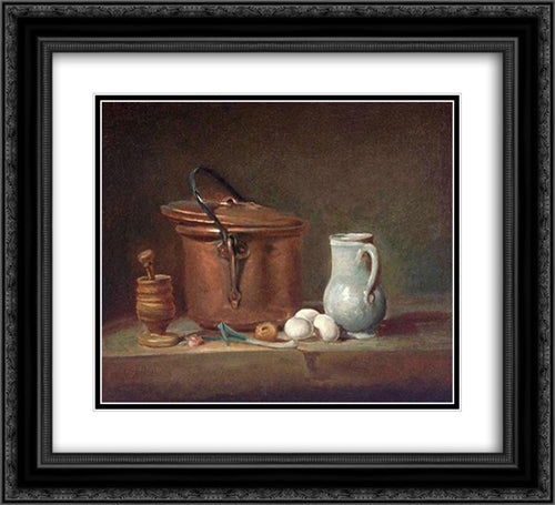 Still Life with Copper Pan and Pestle and Mortar 22x20 Black Ornate Wood Framed Art Print Poster with Double Matting by Chardin, Jean Baptiste Simeon