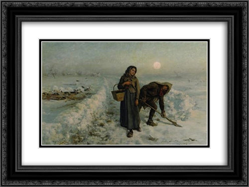 Sur la Route en Hiver, Artois 24x18 Black Ornate Wood Framed Art Print Poster with Double Matting by Breton, Jules