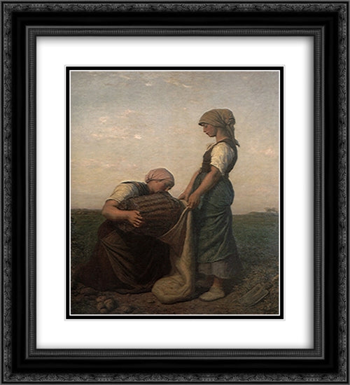 The Potato Harvest 20x22 Black Ornate Wood Framed Art Print Poster with Double Matting by Breton, Jules