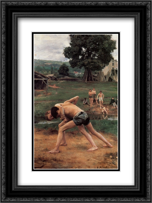 La Lutte 18x24 Black Ornate Wood Framed Art Print Poster with Double Matting by Friant, Emile