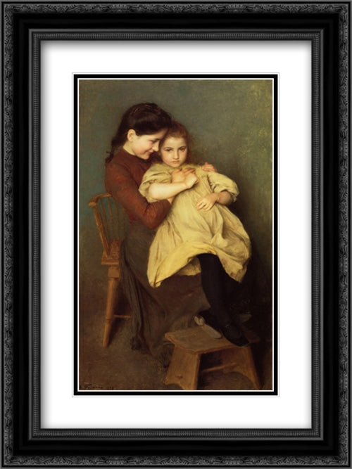 Chagrin d'Enfant 18x24 Black Ornate Wood Framed Art Print Poster with Double Matting by Friant, Emile