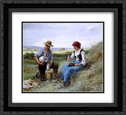 Le Dejeuner de Faneuse 22x20 Black Ornate Wood Framed Art Print Poster with Double Matting by Dupre, Julien