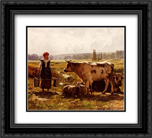 La Laitiere 22x20 Black Ornate Wood Framed Art Print Poster with Double Matting by Dupre, Julien