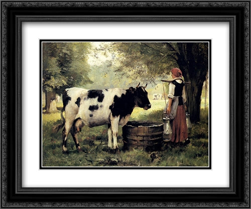 The Milkmaid 24x20 Black Ornate Wood Framed Art Print Poster with Double Matting by Dupre, Julien