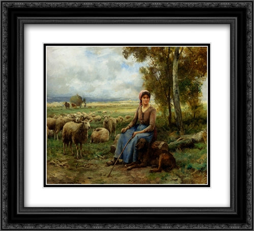 Shepherdess Watching Over Her Flock 22x20 Black Ornate Wood Framed Art Print Poster with Double Matting by Dupre, Julien