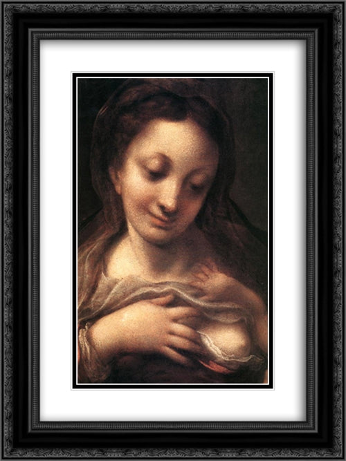 Virgin and Child with an Angel (Madonna del Latte) 18x24 Black Ornate Wood Framed Art Print Poster with Double Matting by Correggio