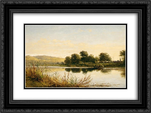 Streatley'on'Thames 24x18 Black Ornate Wood Framed Art Print Poster with Double Matting by Leader, Benjamin Williams