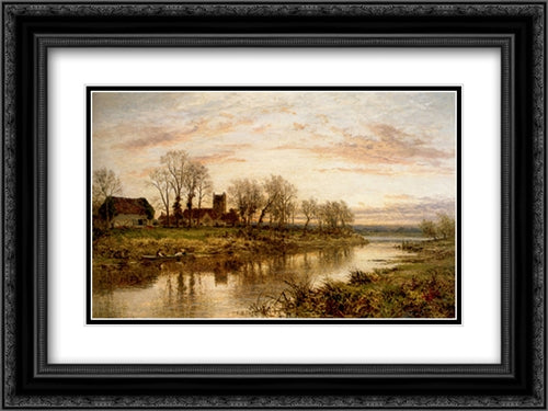 Evening On The Thames At Wargrave 24x18 Black Ornate Wood Framed Art Print Poster with Double Matting by Leader, Benjamin Williams