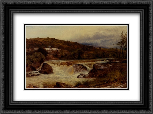 Near Bettws'Y'Coed, The Junction Of The Conway And The Llugwy 24x18 Black Ornate Wood Framed Art Print Poster with Double Matting by Leader, Benjamin Williams